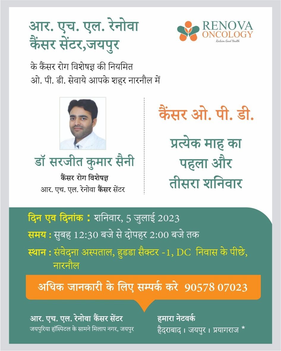 RHL Renova Cancer Centre, Hospital Rd, opp. Jaipuria Hospital, Kailash Puri Colony, Milap Nagar, Jaipur, Rajasthan 302018